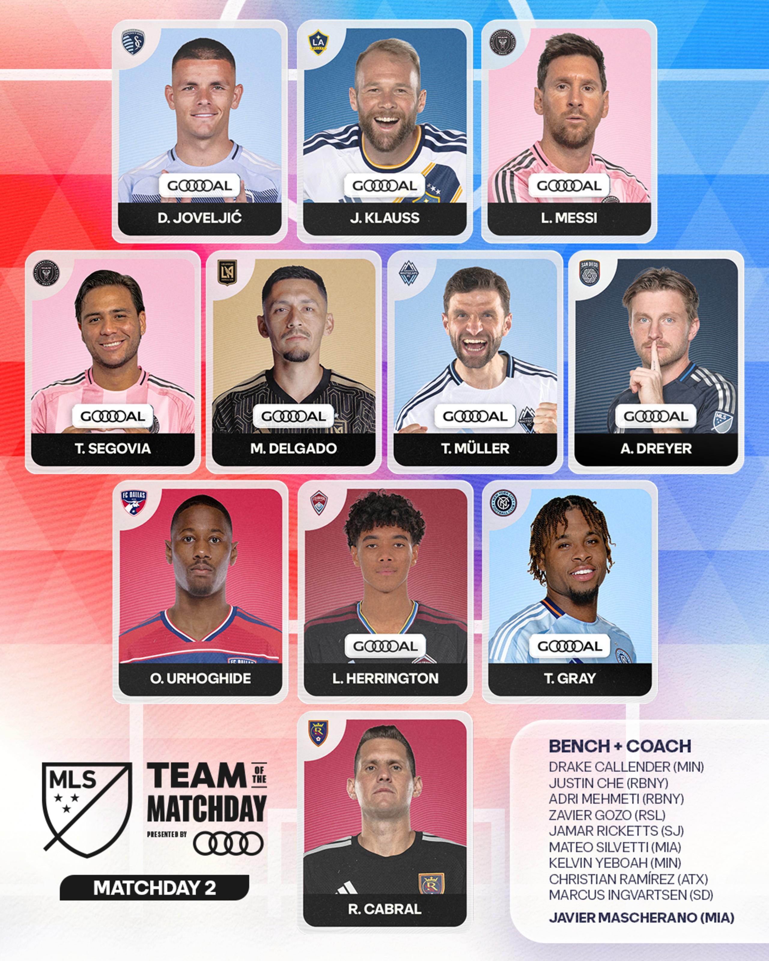 北京时间3月3日,美职联官方公布了美职联第二周最佳阵容,其中梅西、穆勒领衔,主帅马斯切拉诺。